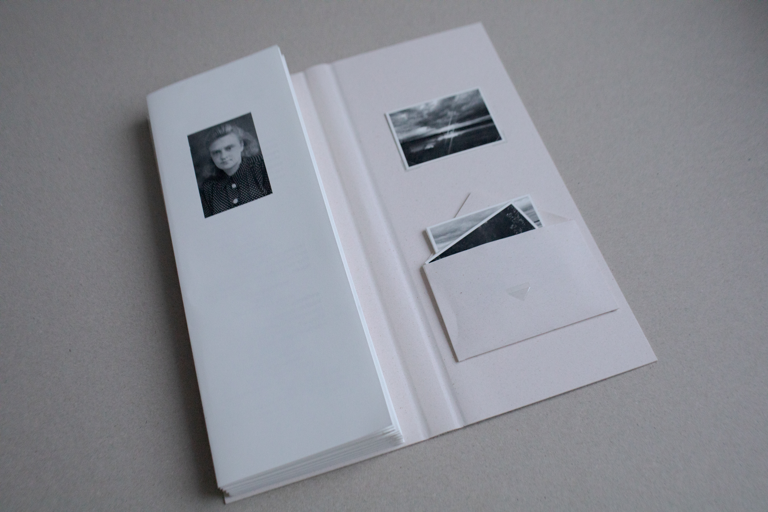 Книга выполнена в технике лепорелло. Нарратив бабушки дополняют силуэт Северной Двины, а также фотокарточки, сделанные авторкой проекта во время экспедиций по "бабушкиным местам".Эстетская, сложноскроенная и в тоже время минималистичная, лёгкая (вес), тактильная (картон, текстиль, бумага, ручная склейка). Книгу можно полистать или развернуть в длину, достать из конвертика фотокарточки и, главное, занырнуть с головой в текст - бабушкину историю.