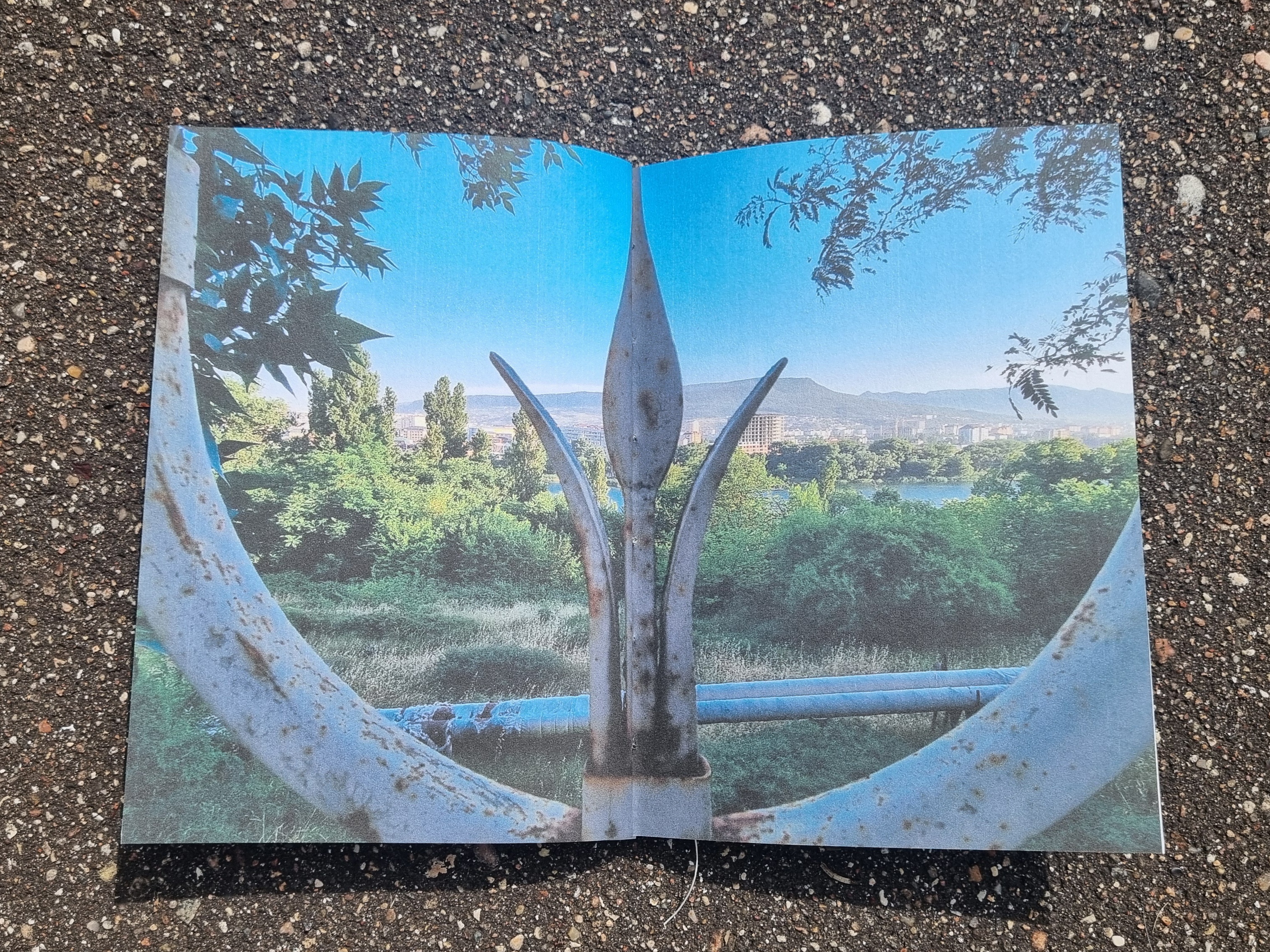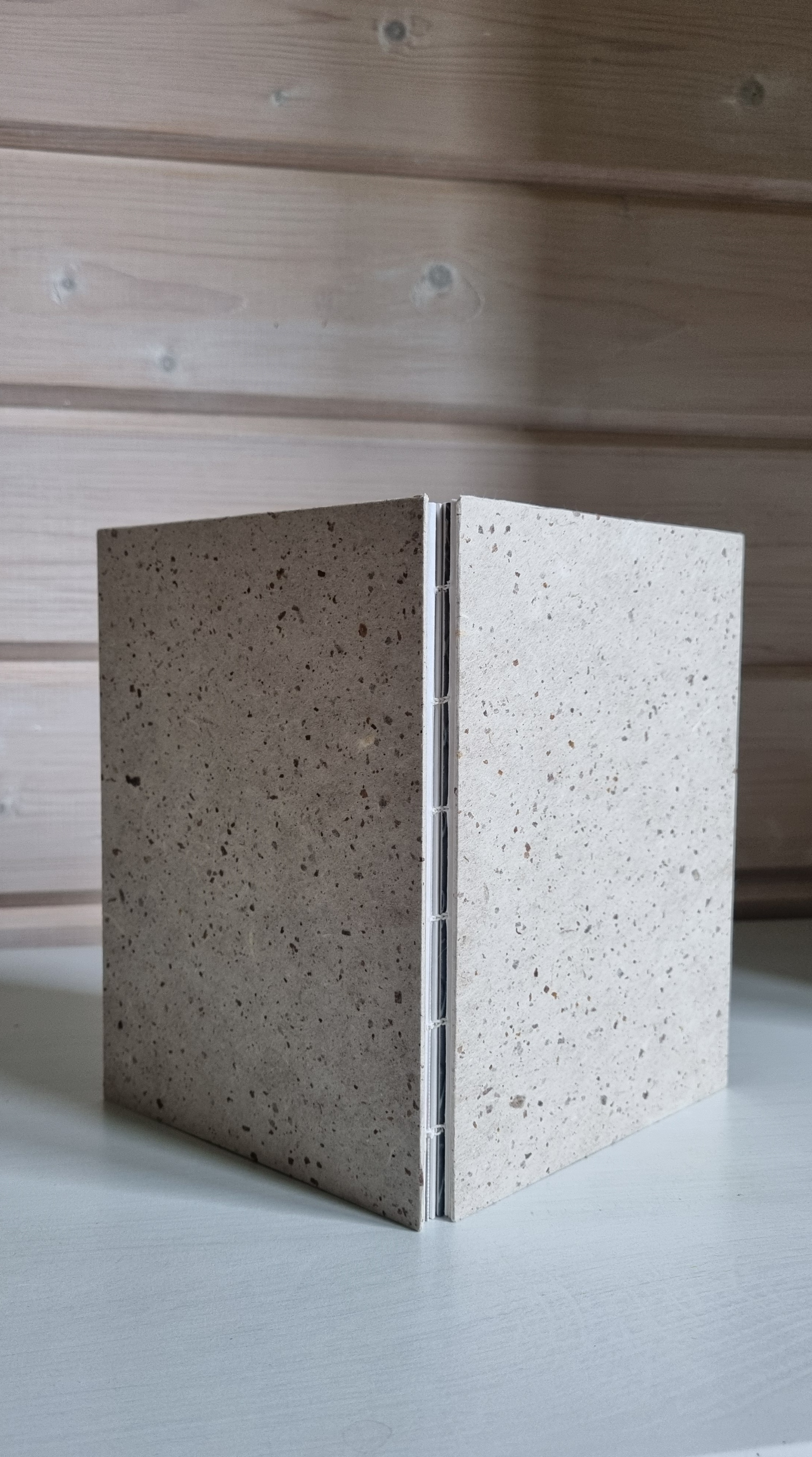 Цветная печать, три типа бумаг, переплет выполнен вручную, обложка из тактильной художественной бумаги, воспроизводящей поверхность белого дербентского камня.