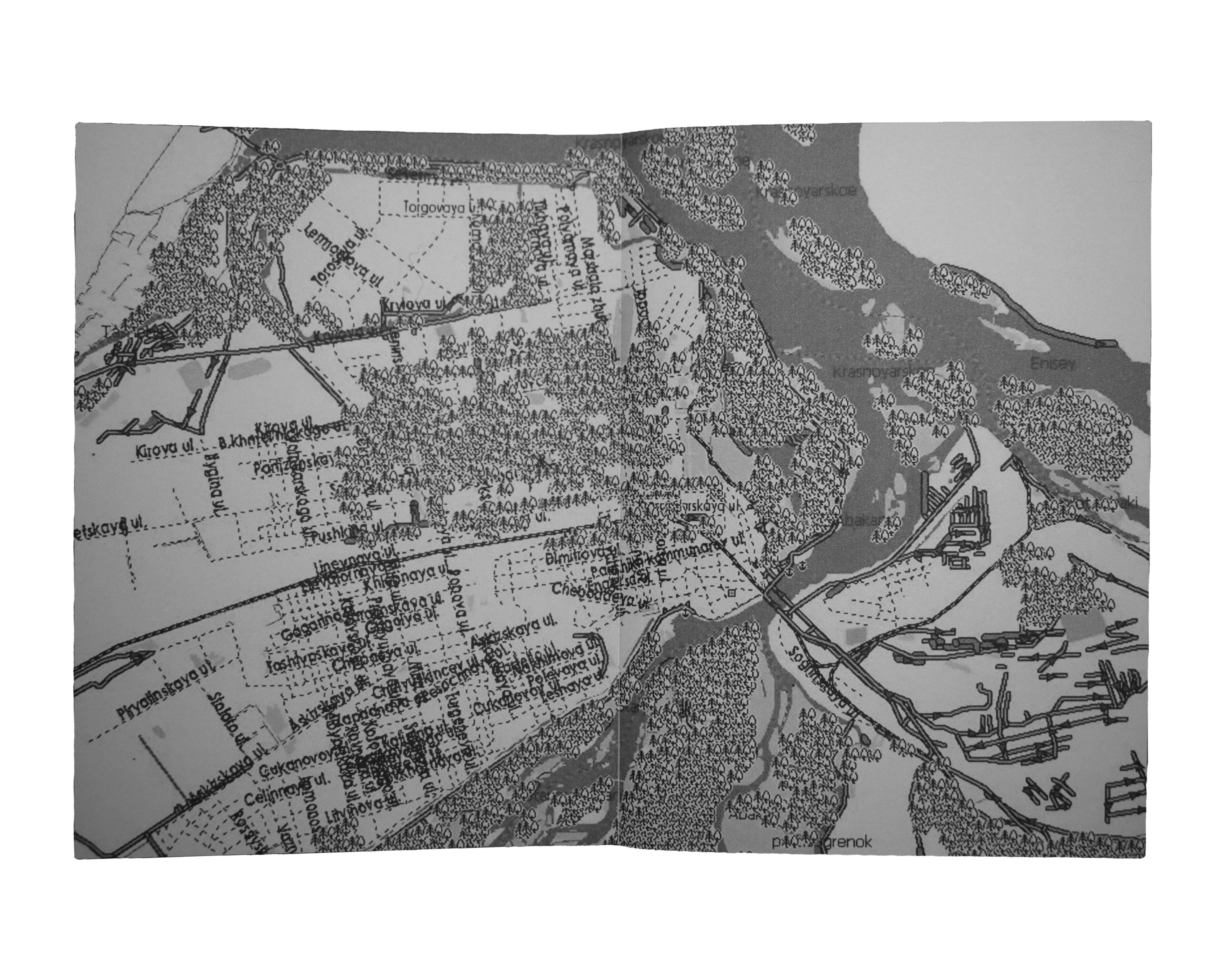 Зин состоит из черно-белых фотографий, прошедших несколько этапов потери информации (печать-сканирование-снова печать), карты местности и монолога пассажира поезда Абакан-Москва.