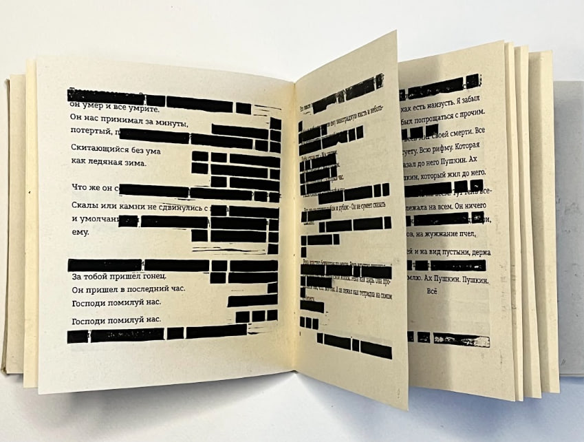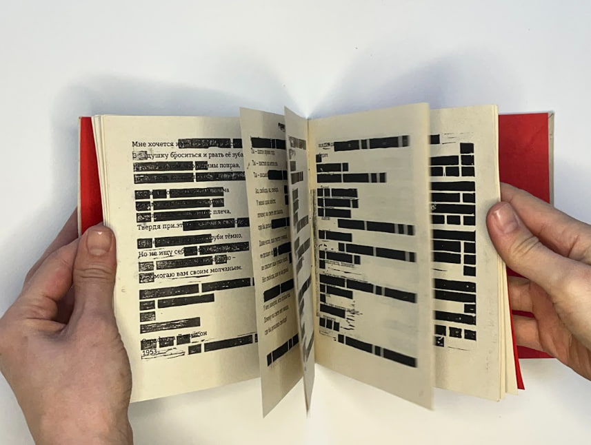 текстом путем вычеркивания слов для раскрытия нового поэтического произведения,