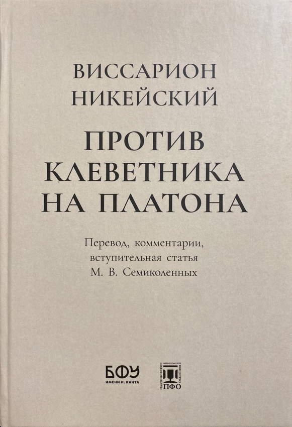 «Против клеветника на Платона» Виссариона Никейского — одно из многих сочинений, относящихся к полемике между платониками и аристотеликами середины XV века — является первым опытом последовательного изложения платоновской философии на латинском языке. Отвечая на обвинения своего «противника» и стремясь доказать, что учение Платона не представляет опасности для христиан Запада и может даже быть им весьма полезным, Виссарион затрагивает множество тем: от природы Бога и души до наилучшего устройства государства, — используя при этом методы исследования и аргументации, заимствованные из арсенала как схоластов, так и гуманистов.