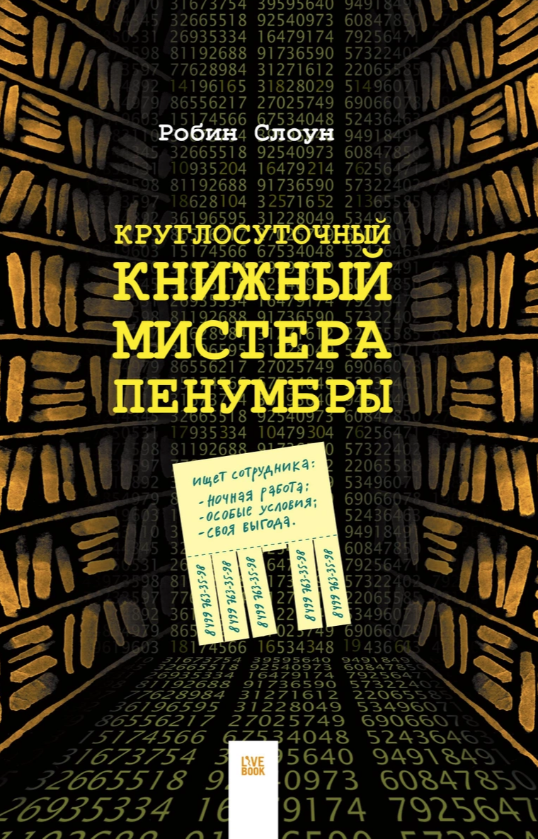 Книжный магазин - идеальное место, чтобы спрятать концы в воду. На пыльных дальних полках мистер Пенумбра хранит книги, которых, если верить Гуглу, не существует. Вереница странных символов, тисненные золотом переплеты, редкие читатели и ночной продавец, которому эксцентричный владелец ясно дает понять: не задавай вопросов, а главное - не читай. Но паутина загадок уже оплетает героя. Пара неосторожных фраз - и вот уже целый батальон друзей - книжники и программисты из Гугл, знатоки античности и фанаты "Звездных войн" - пытаются разгадать шифр полувековой давности.