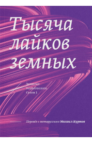 «Тысяча лайков земных» по праву может считаться первым метарусским романом. В книге сплавлены воедино научная и лженаучная фантастика, философские спекуляции и параутопические прогнозы, политическая теория и юмор. Переводчик книги с метарусского языка — известный в среде петербургских интеллектуалов философ Михаил Куртов.