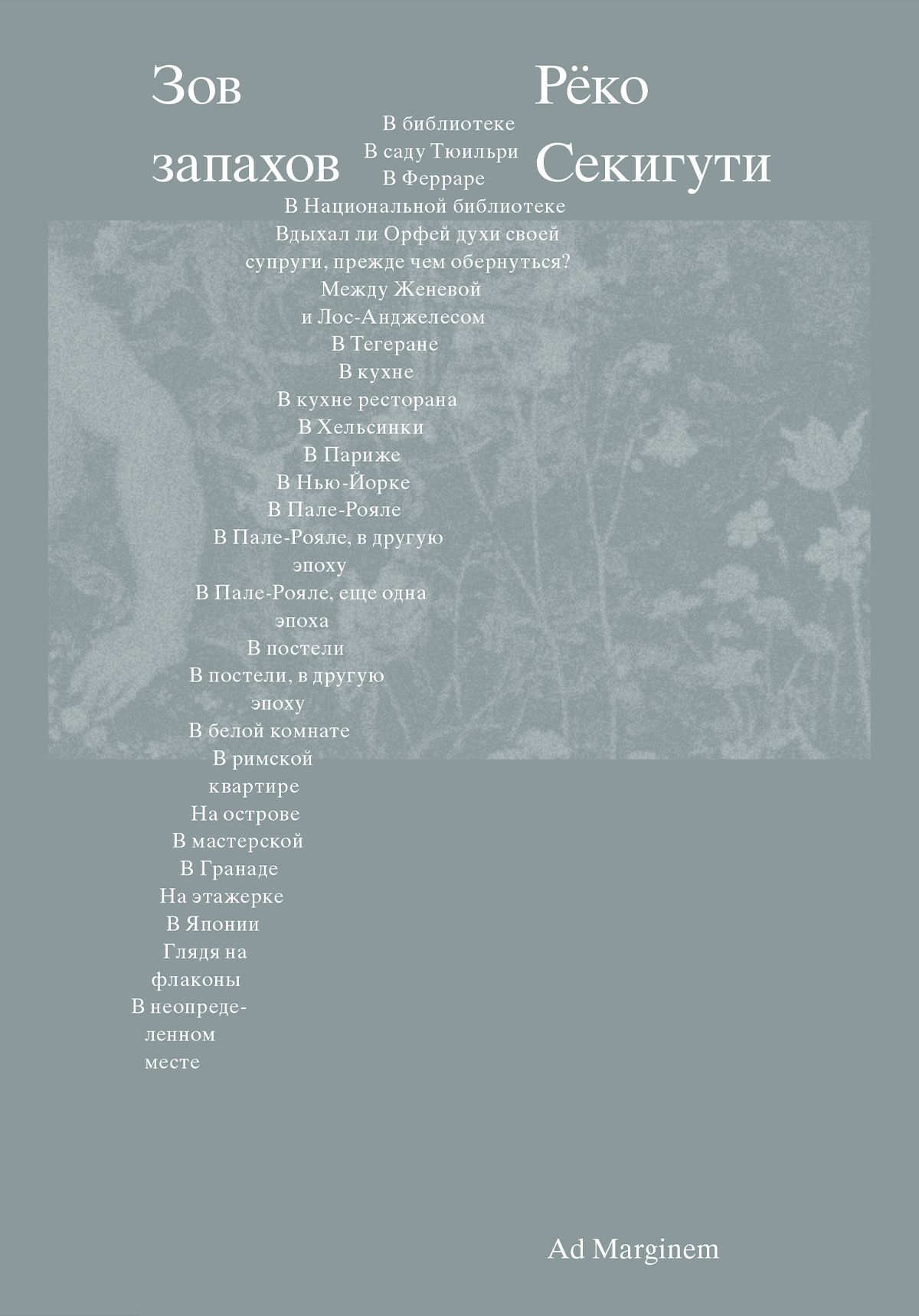 «Мир состоит из головокружительного движения запахов». Люди, животные, растения, вещи, воспоминания — всё складывается в ольфакторный орнамент, проходящий через наши жизни и связывающий их между собой. В своем новом тексте (2024) японская писательница Рёко Секигути открывает для нас дневник запахов — истории нескольких женщин разных стран и эпох, рассказанные через призму их обонятельных впечатлений. Новеллы чередуются с цитатами из книг и размышлениями о семиотической роли запахов, вопросами о свойствах и возможностях душистых молекул: чем пахнет тайна? Есть ли аромат тени? А расставания? Найдем ли мы запахи тех, кого когда-то знали и любили? Секигути рассматривает запах не только как «продолжение присутствия», но и как средство познания, способное нарушить наши привычные отношения со временем и пространством.