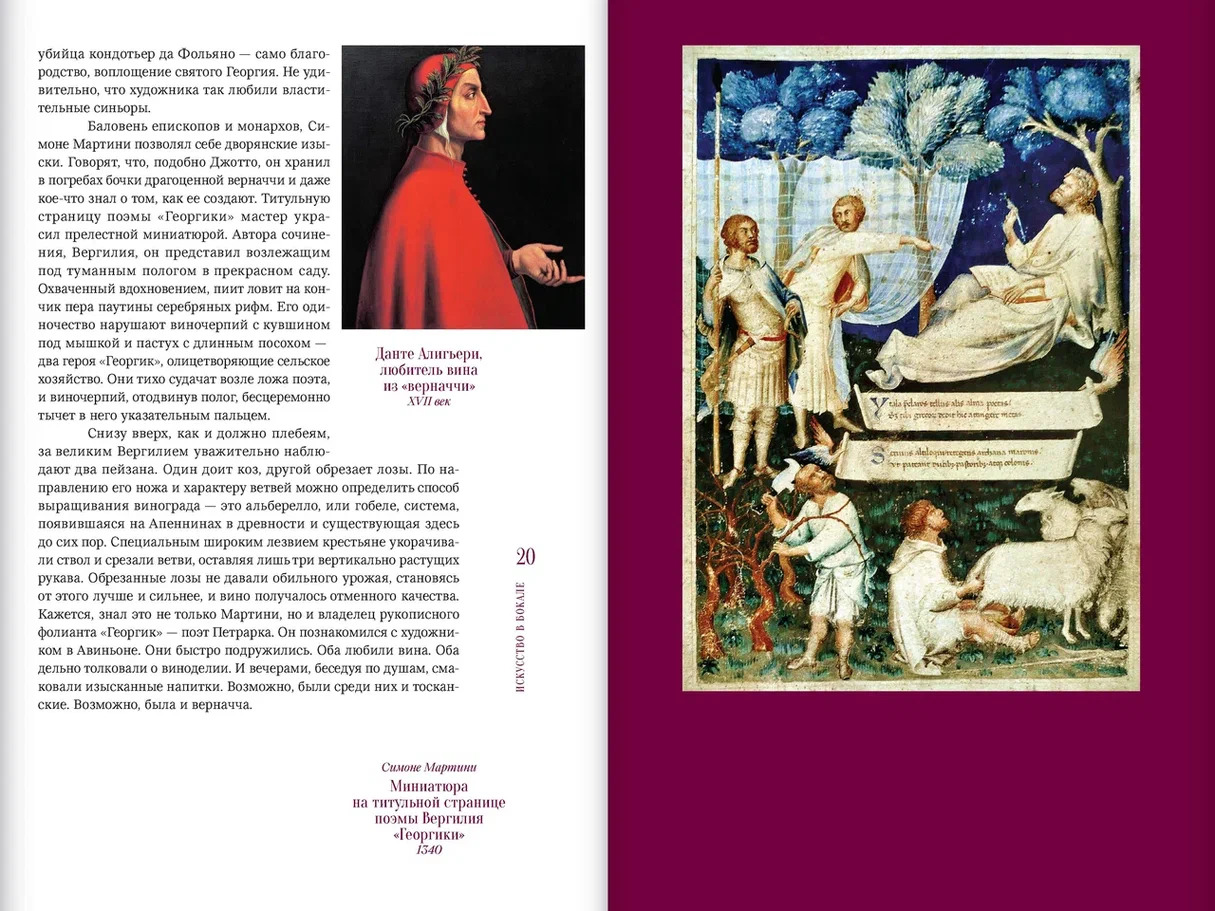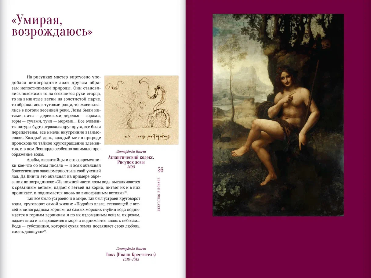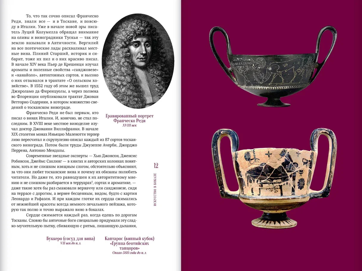 В книге представлен новый культурологический и энологический взгляд на произведения выдающихся художников. Подробно рассмотрены отношения всемирно известных мастеров с миром вина. Почти у каждого великого живописца сложились свои связи с ним. Кто-то вдохновлялся образами Вакха, как Караваджо. Кто-то превращал вино в символ искупления, как Ван Эйк. Иные, как Микеланджело, делали вина или, как да Винчи, изучали и выводили новые сорта винограда. Другие, подобно Пиросмани, забывались в вине и в забытьи создавали шедевры. В книге предложена авторская атрибуция вин, изображенных на известных картинах, а также показаны становление модных винных брендов XX века и совместные арт-проекты знаменитых художников, галерей и музеев с виноделами и винными компаниями. В основу книги легли малоизвестные, в том числе архивные материалы.