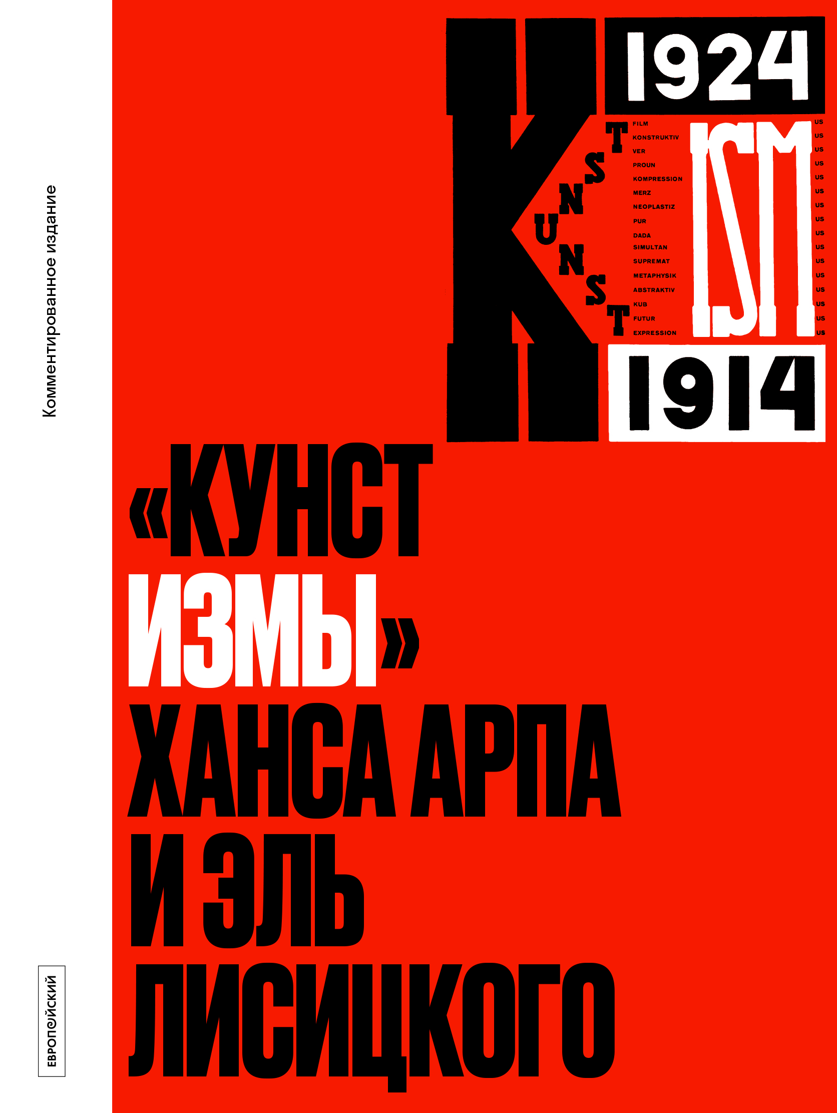 В 1924 году Ханс Арп и Лазарь Лисицкий, находясь в Швейцарии, задумали издание, отражающее новейшие достижения современного европейского искусства. Это итог военного десятилетия, «смотр всех войск», как называл его Лисицкий. Художники чувствуют наступление новой исторической эпохи и стараются зафиксировать достижения своего круга, выступая в качестве историографов искусства, которое в тот момент является насколько прогрессивным, настолько и непонятным широкой аудитории. Арп и Лисицкий отобрали 16 «измов» (художественных направлений): 67 произведений 57 художников, созданных с 1914 по 1924 год. Каждый «изм» коротко описан. В настоящей книге представлено факсимильное издание Die Kunstismen = Les Ismes de L’Art = The Isms of Art: 1924–1914 (hrsg. von El Lissitzky, Hans Arp. — Erlenbach-Zürich; München; Leipzig: Eugen Rentsch Verlag, 1925), сопровожденное атрибуцией работ, а также примечаниями о дальнейшей судьбе этих произведений. Для русского издания было выбрано название «Кунстизмы» — отражающее как немецкий характер книги, так и появление нового понятия. Научное издание сопровождает вступительная статья, комментарии и приложения.