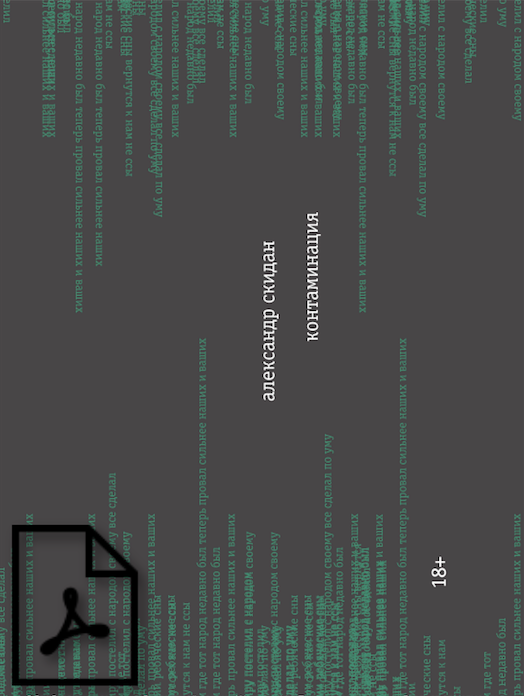 Александр Скидан — поэт, критик, переводчик современной американской поэзии и теоретических работ по литературе и искусству, автор более десятка книг, в том числе романа «Путеводитель по N», в том числе поэтического сборника Membra Disjecta, выпущенного в 2016 году совместно издательствами «Ивана Лимбаха» и «Порядок слов» (в серии «Новые стихи»), в который вошли новые тексты и тексты прежних лет, своего рода «избранное», лауреат премии Белого (за книгу стихов «Красное смещение», 2006), стипендиат Фонда Бродского (2018). Стихи, составившие «Контаминацию», написаны за последние несколько лет, публиковались в разных журналах и интернет-изданиях, но в отдельную книгу собраны впервые.