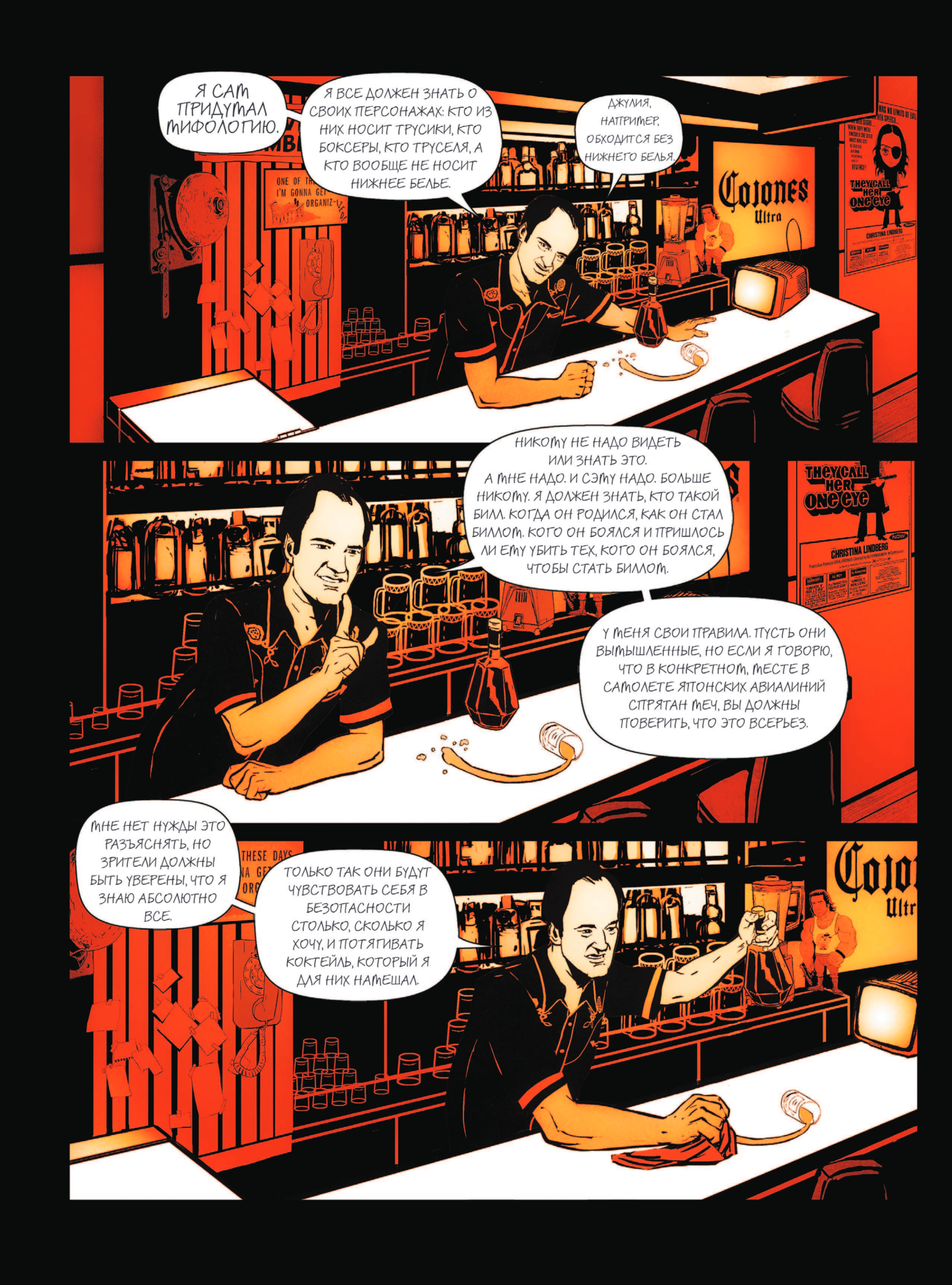 Кто бы отказался пообщаться с Квентином Тарантино? Настоящий фанат режиссера точно бы не упустил такую возможность. А если гениальный кинематографист еще и сам расскажет обо всех деталях своего творческого пути и попробует проанализировать феномен популярности своих фильмов, то тут не устоит любой киноман. Перед вами комикс-биография Тарантино, написанная от лица самого режиссера. Авторы тщательно изучили карьерный путь мастера, и это позволило им практически залезть в голову Квентина.