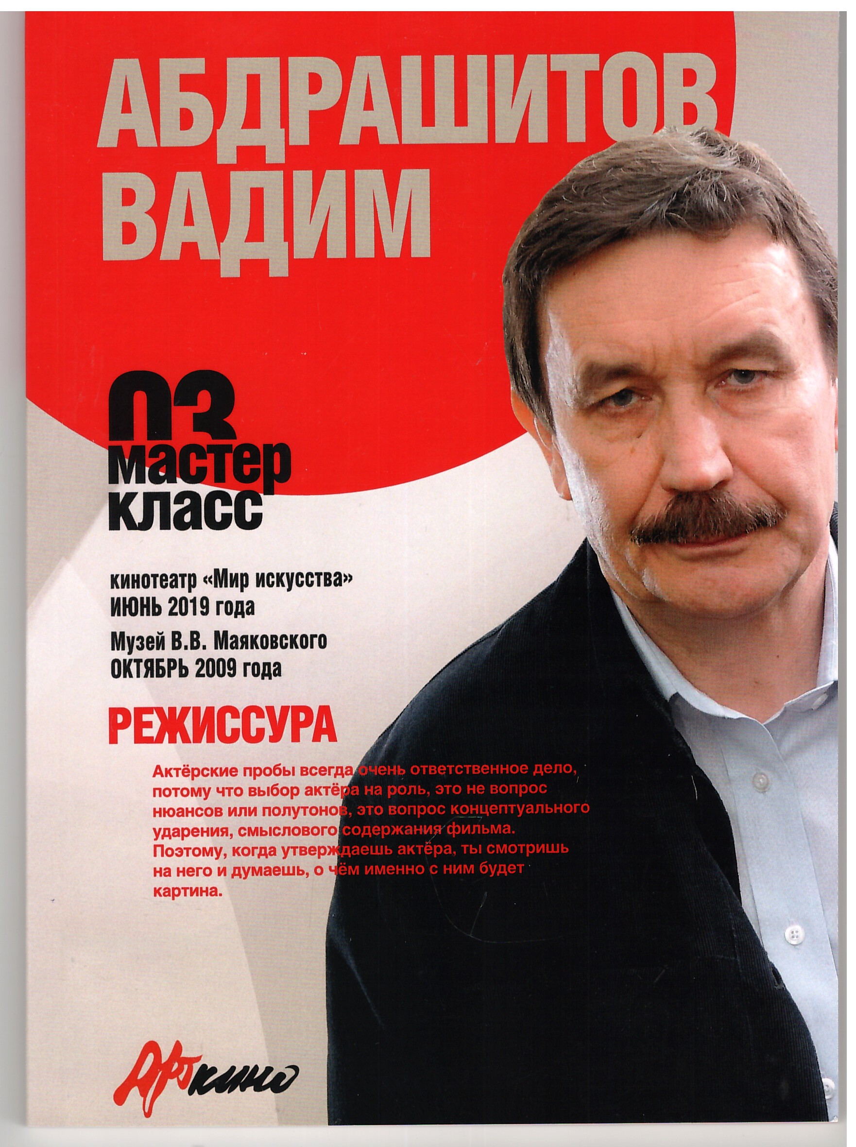 В основу книги легли расшифровки двух мастер-классов, которые провёл выдающийся отечественный кинорежиссёр и педагог, лауреат Венецианского и Берлинского кинофестивалей. Ученик Михаила Ромма и Льва Кулиджанова Вадим. Абдрашитов обратил на себя внимание ещё в период учёбы. Его курсовая работа во ВГИКе «Остановите Потапова» оказалась настолько блестящей, что её засчитали за диплом, а выпускнику сразу предложили работу на Мосфильме. Там он нашёл своего автора – Александра Миндадзе, по сценариям которого снял 11 полнометражных фильмов. Пройдя путь от социально-критического реализма до метафорического притчевого кино Вадим Абдрашитов в своих картинах отразил время, обогатил киноязык и тематику российского, да и мирового кино.Вместе с Алексеем Германом-старшим, Юрием Норштейном, Георгием Данелия, Марленом Хуциевым, Глебом Панфиловым на фестивале «Арткино» награждён призом «За выдающийся вклад в развитие авторского кино».