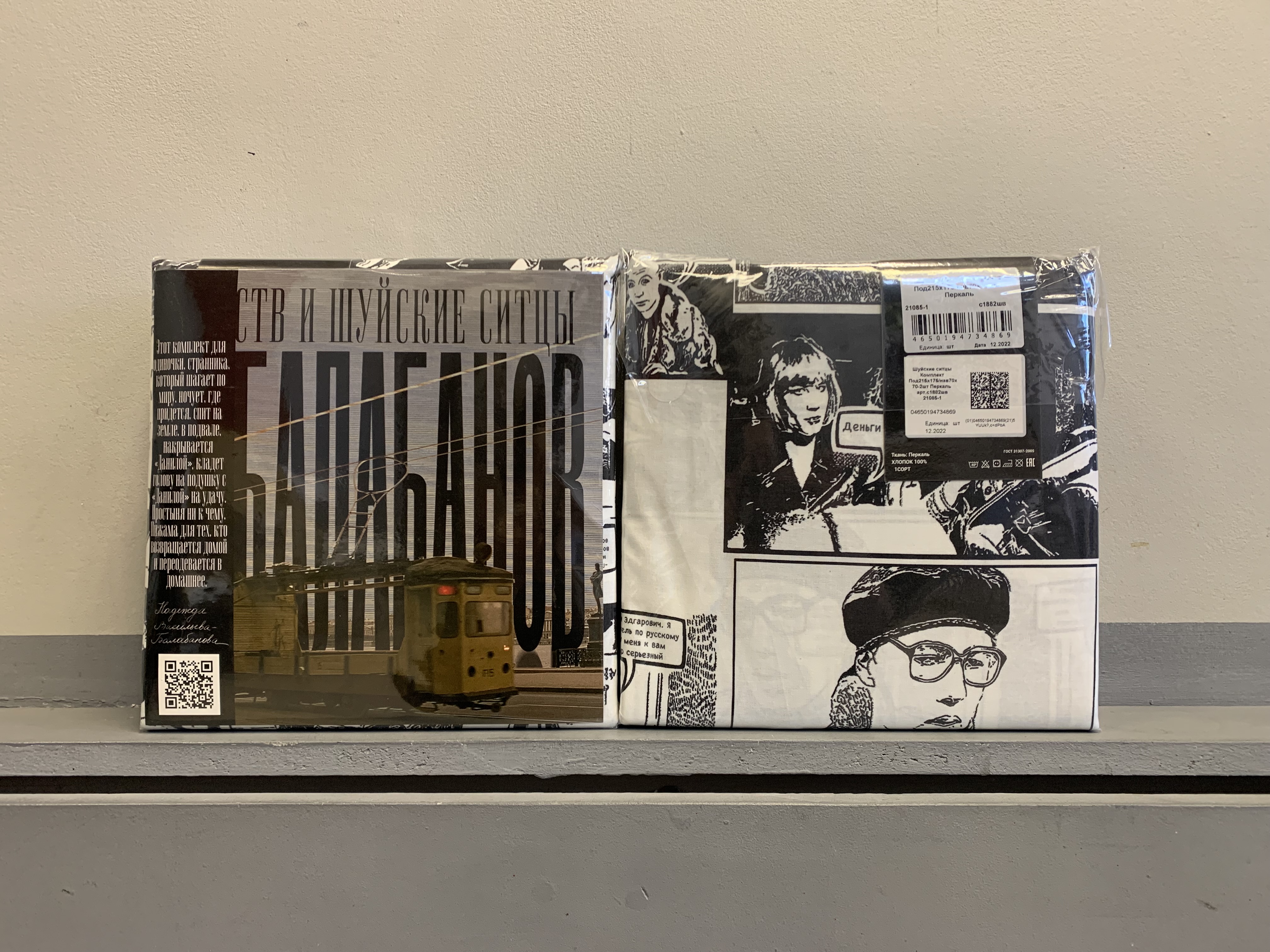 Постельное белье «Балабанов» (лимитированный тираж) от художника по костюмам всех фильмов режиссера — Надежды Васильевой-Балабановой. На ткани — принты с узнаваемыми образами и знаменитыми цитатами героев фильмов «Брат» и «Брат-2». В комплекте — пододеяльник (215*175) и наволочки (70*70).
