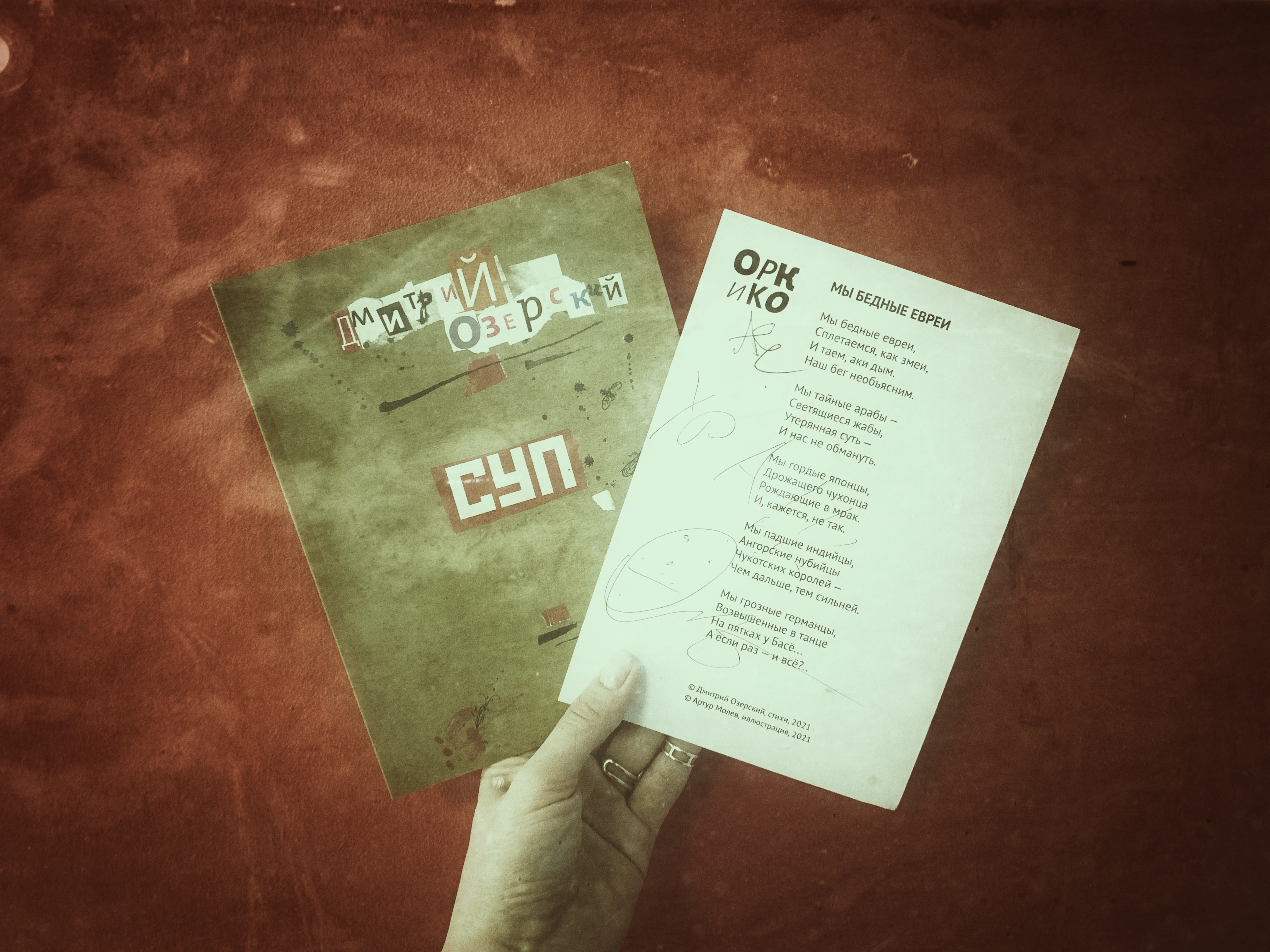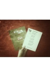 Программа "Суп" сложилась стихийно - в неё вошли тексты совершенно разных лет, которые нам (ОРК и КО) в настоящее время приятно (или интересно) произносить вслух и некоторым образом музыкально (или не очень музыкально) обыгрывать. И данный сборник тоже следует рассматривать по нашему глубочайшему убеждению, прежде всего, как некоторую театральную программку, предназначение которой: во-первых - быть скромной помощницей в деле повышения разборчивости далеко не всегда внятно произносимых в трудных условиях текстов, и во-вторых - давать замечательную и чудесную возможность произносить эти тексты самостоятельно, вслух, в спокойных домашних условиях, для себя, для друзей, родственников, знакомых, а при желании - и для совершенно незнакомых Вам посторонних людей.