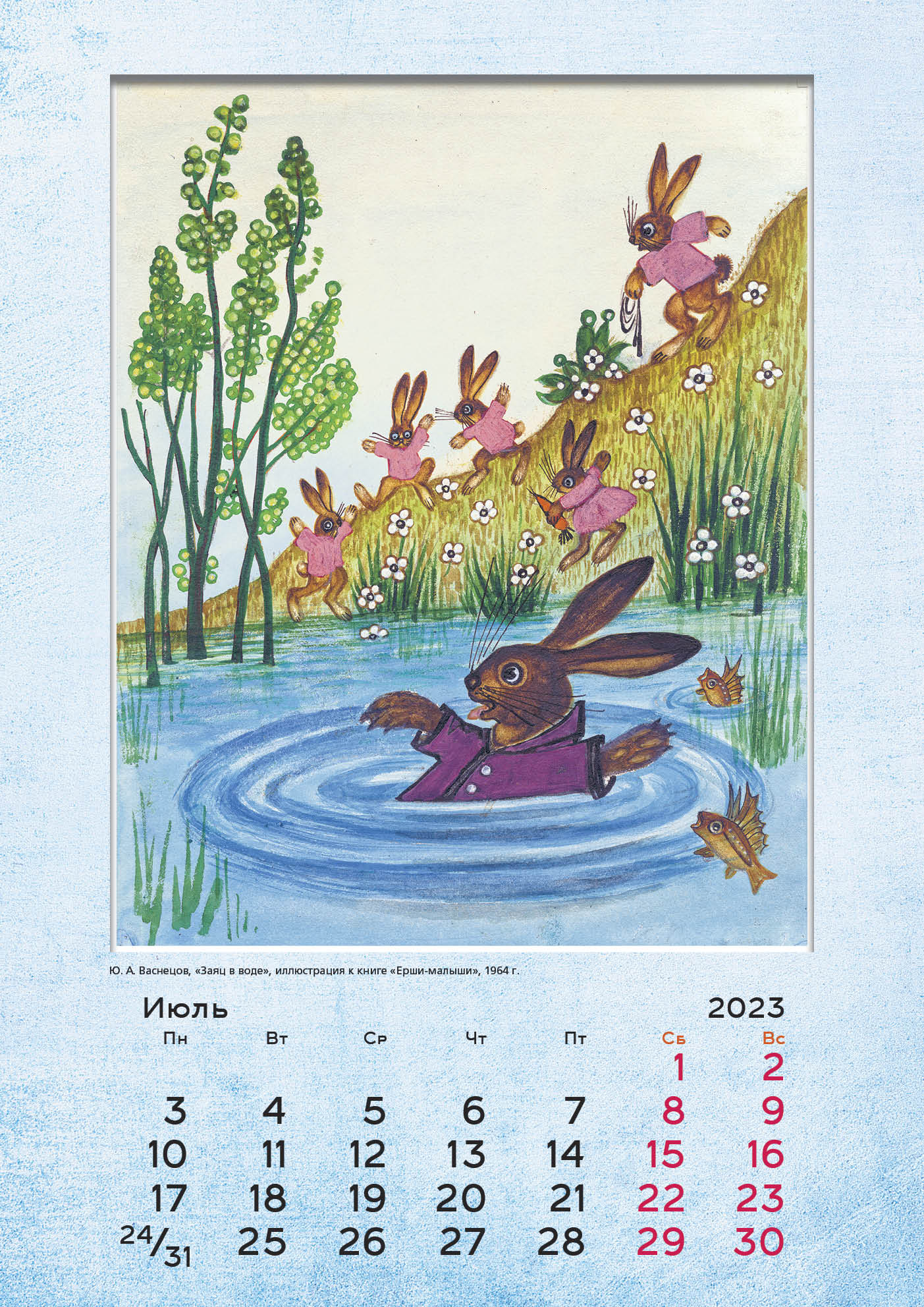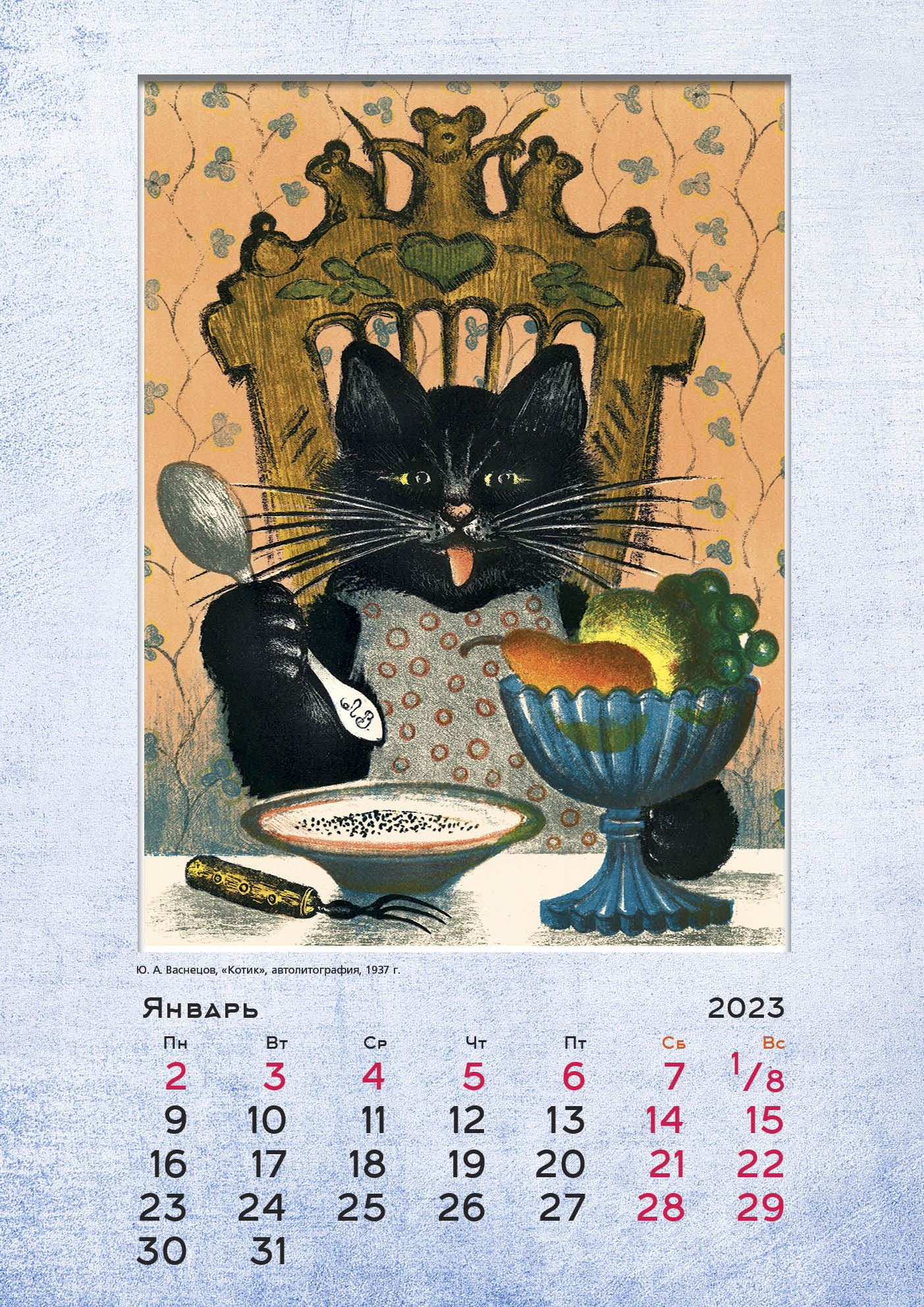 Настенный перекидной календарь по сказочным произведениям Юрия Васнецова. В издании использованы иллюстрации из самых известных книг и две автолитографии.