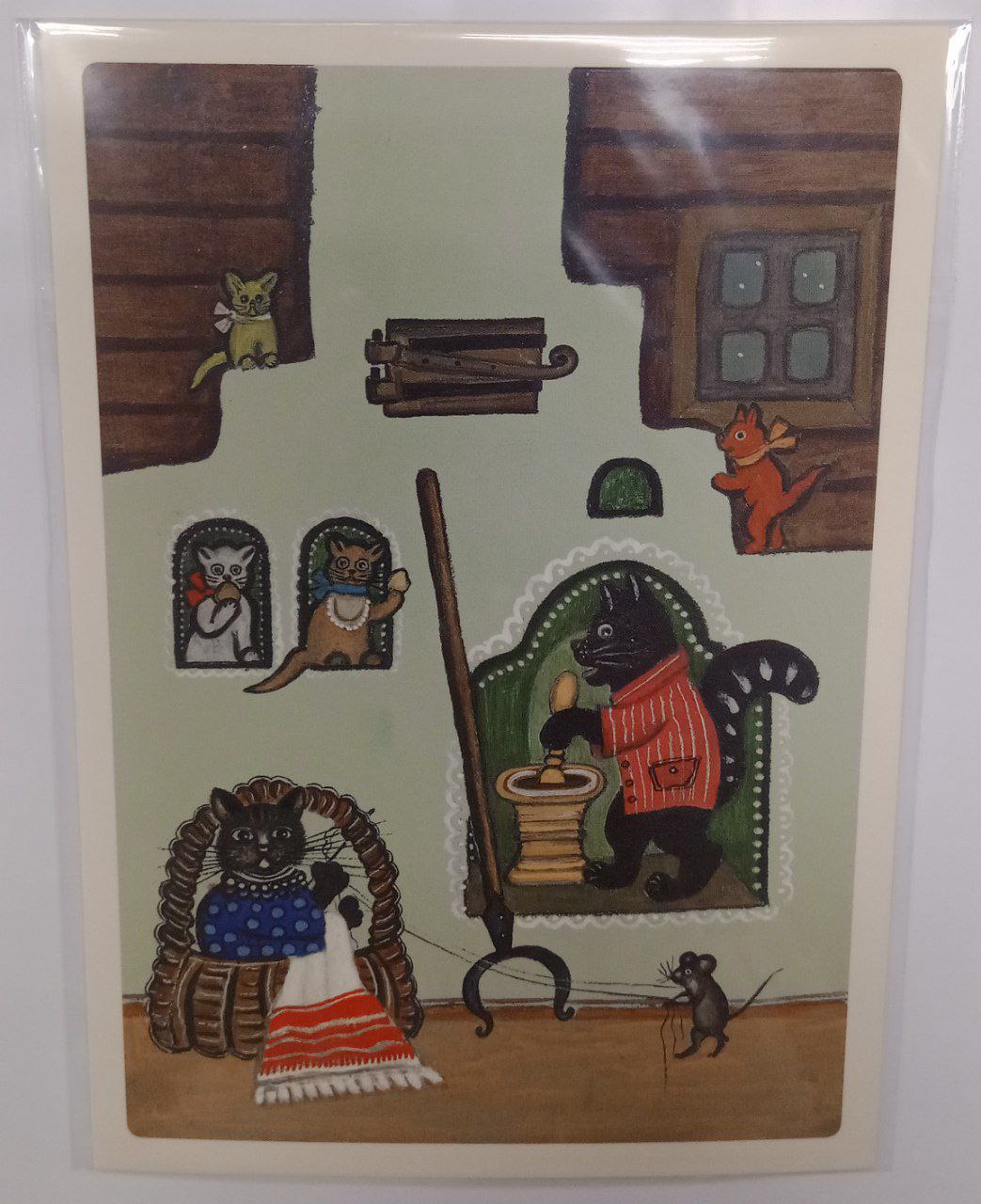 Почтовая открытка «Кошачья семейка» по иллюстрации Юрия Васнецова