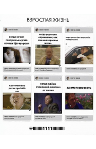 В это сложно по верить, но иногда очень знакомые ситуации из жизни лучше всего иллюстрируют размышления Иосифа Бродского или цитаты из лекций философа Александра Пятигорского, сохранившихся на видеозаписях. Быстро растущей аудитории аккаунта нравится абсурдное совмещение бытовых проблем и цитат известных интеллектуалов. Неудачные свидания, жизнь на карантине, общение с родственниками — на все эти темы можно найти ответы у Жижека, Тарковского или Довлатова.
