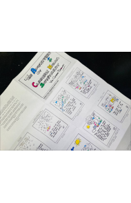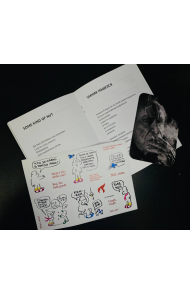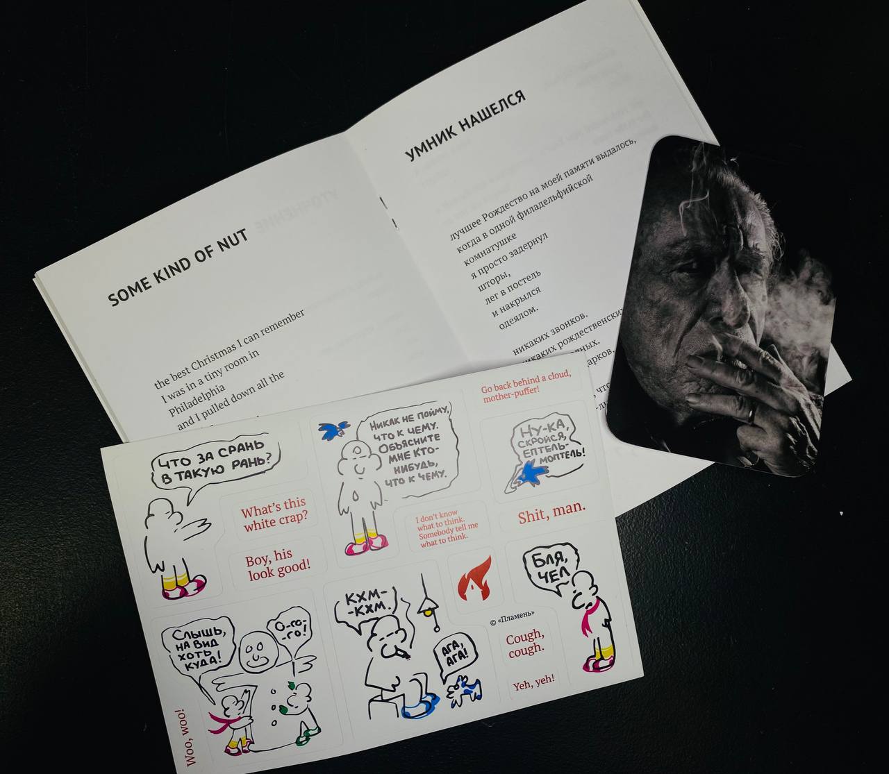 Помимо книжки со стихами на Рождество и Новый год комплект включает авторскую историю в картинках, впоследствии переработанную для центрального стихотворения, и стикерами по мотивам, а также карманный календарик (кстати, производственный) вместо фронтисписа.