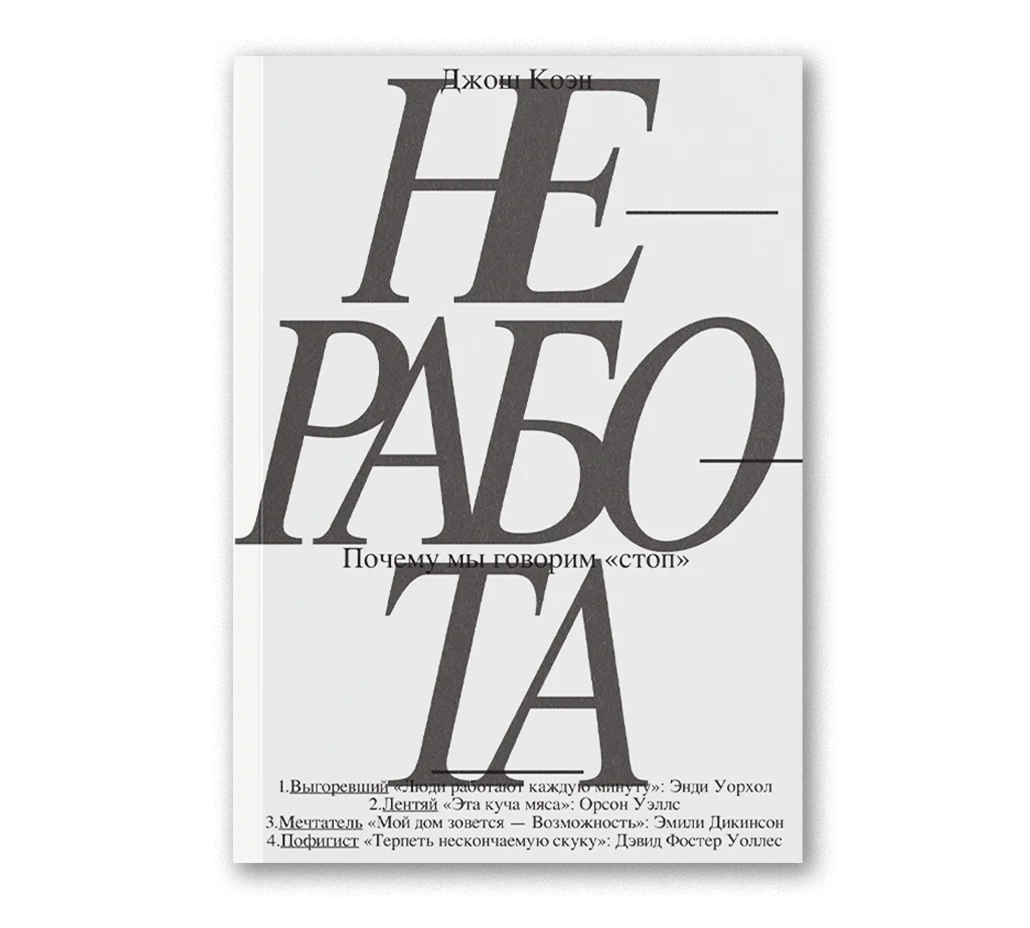 Книга британского психоаналитика Джоша Коэна посвящена нашим отношениям с трудом, точнее — заложенному в каждом из нас желанию не работать, которое отнюдь не безоблачно сосуществует с желанием работать — и добиваться успеха, престижа, благополучия, — причем, как полагает автор, является не менее, а возможно, и более важным, даже определяющим для человека. Это желание знакомо нам с детства, когда оно с легкостью удовлетворяется, но мы учимся подавлять его и привыкаем отдавать все силы работе, порой забывая, что жизнь ею не исчерпывается. Иногда результатом становятся большие достижения в избранной нами профессии, иногда — депрессия, иногда то и другое вместе. Как быть с потребностью в «неработе», которую невозможно реализовать в полной мере, но и отрицать, задавливать в себе, крайне опасно? Автор ищет подступы к ответу на этот, должно быть, неразрешимый вопрос в собственном жизненном опыте, в историях своих пациентов и в судьбах нескольких выдающихся людей, столкнувшихся с конфликтом между работой и «неработой» вплотную, — Эмили Дикинсон, Орсона Уэллса, Энди Уорхола и Дэвида Фостера Уоллеса. Из автобиографических очерков, заметок психоаналитика и тонких наблюдений о природе творчества складывается этот текст, продиктованный стремлением Джоша Коэна разобраться в себе и способный помочь в этом нам.