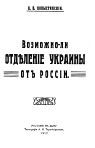 Копыстянский А. Возможно ли отделение Украины от России. Репринт издания 1917 года. СПб: Красный матрос. 2025.