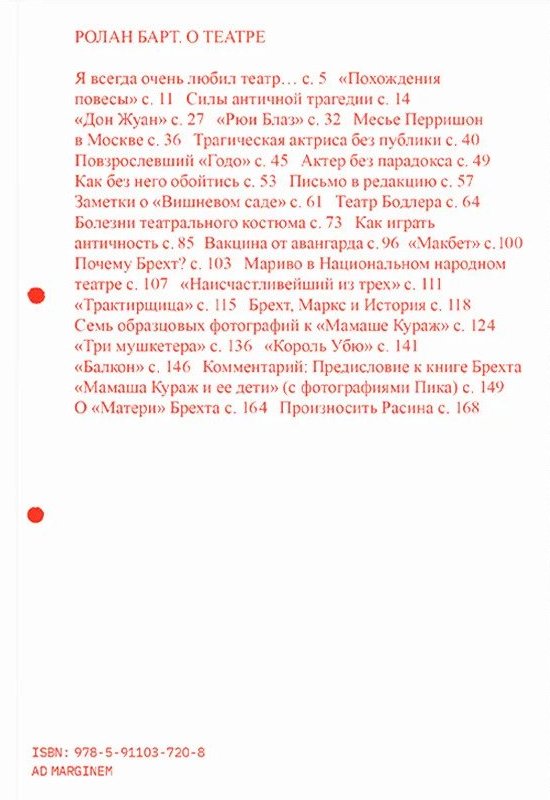 Ролан Барт мало известен нашему читателю как театральный критик. А между тем он был глубоко увлечен театром, и не только как зритель, но и как один из основателей и постоянных авторов журнала Théâtre populaire. Пятидесятые годы — время для французского театра исключительно важное, именно тогда намечаются те линии, которые составляют актуальный театральный пейзаж. Собранные здесь тексты, идет ли речь о критическом отзыве на давно позабытый спектакль, о политическом его звучании, теоретическом аспекте или экскурсе в историю, неизменно касаются самой сущности театра, а потому не теряют интереса и сегодня.