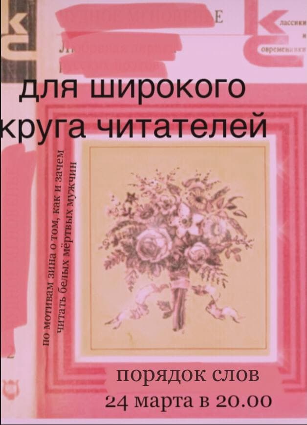 24 марта в 20:00 в лектории Порядка слов пройдёт дискуссия о том, каково это — быть читателями интеллектуальных текстов, и теми, кто создаёт среду/контекст/ситуацию такого чтения. Модераторы дискуссии — Полина Колозариди и Андрей Тесля.